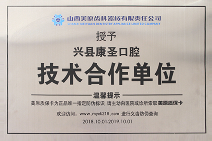 山西省口腔医师协会授予:康圣口腔-委员单位