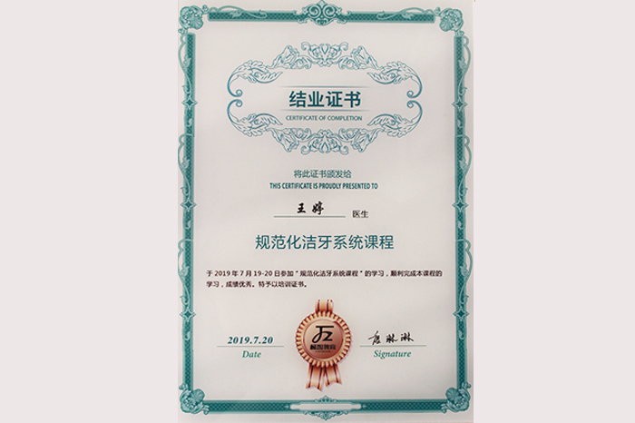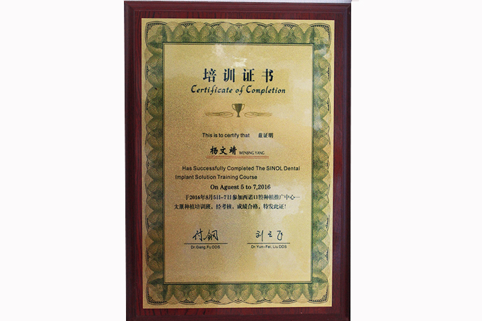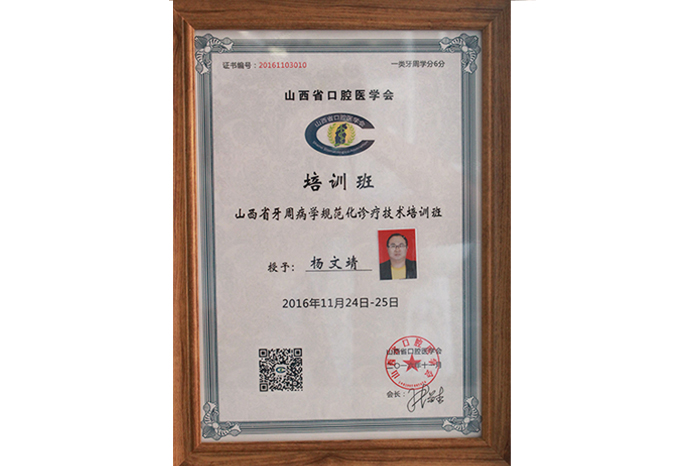 授予:杨文靖山西省牙周病学规范化诊疗技术